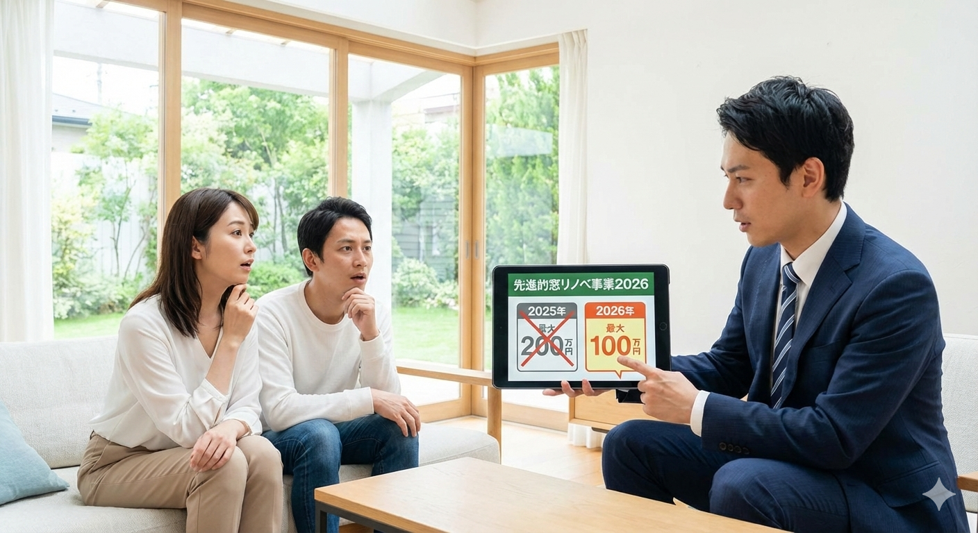 2026年の「先進的窓リノベ事業」は、窓の断熱改修に特化した国の大型補助金制度です。最大の変更点は、補助金の上限額が前年の200万円から100万円に半減したことです。