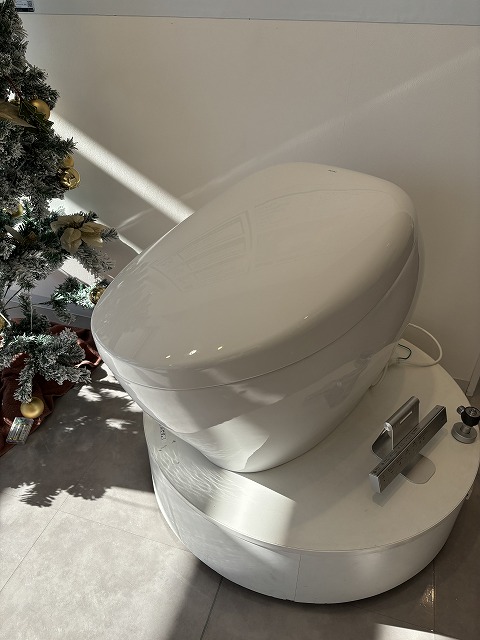 美しく高級感のあるトイレ「ネオレストNX」が出入り口に飾ってあり、私、ついつい気持ちが舞い上がってしまい、撮った写真を見返すとツリーはトイレの背景になってしまっていました。💦