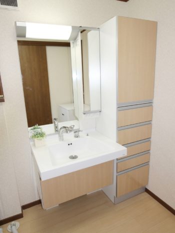 ご提案内容洗面台で髪を洗いたいので、水栓の高さが変えられる洗面台をご希望でした。TOTOの『座ってラクラクシリーズ』なら、水栓の高さを調節できます。座って使える仕様なので、今も将来も快適にお使いいただけます。収納キャビネットも設置し、収納量も確保しました。